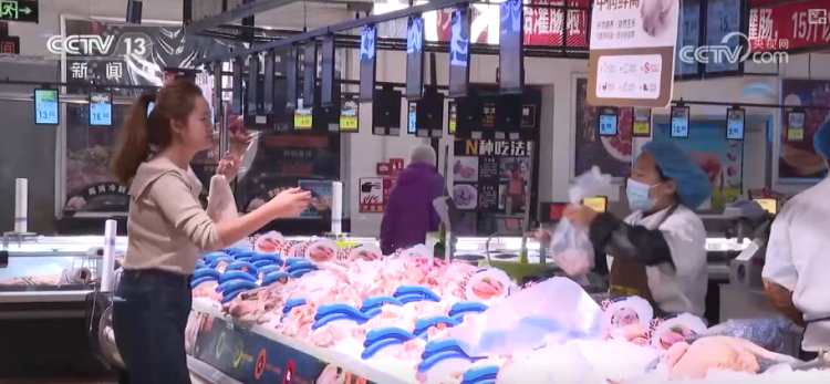 在河北磁县一大型活命超市里,货架上千般商品丰富多采,尤其生鲜区,蔬菜瓜果、肉蛋奶货源满盈、供应丰富。