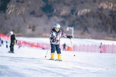 图为滑雪疼爱者在体验滑雪。